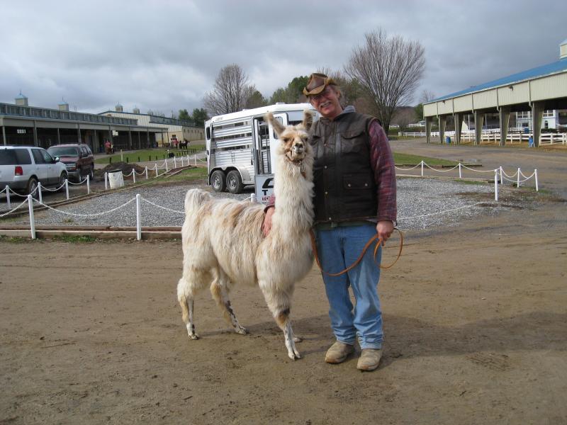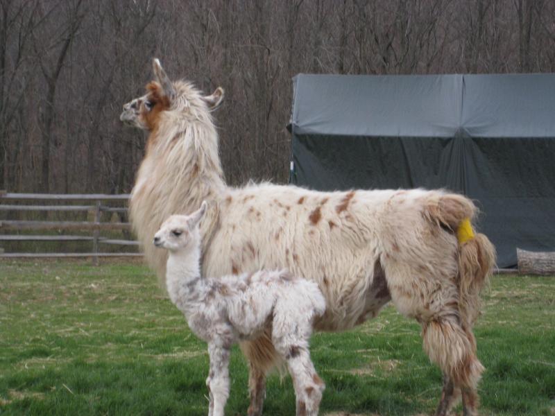 We had to honor Confetti, Miracle's dam, with the naming of this baby. Confetti, a leading producer for the Goodyears, produced this awesome replica of herself for her 13th cria. Miracle has fiber to die for. His fiber has grown eight inches in his first year and it is super soft. Miracle is a real gem. He is mature beyond his years. His sire, Baroquee, owned by Todd Wamsher of Vineyard Valley Llamas, is of the famous Tuna Catcher line. Miracle will add fiber and a sweet disposition to his offspring.